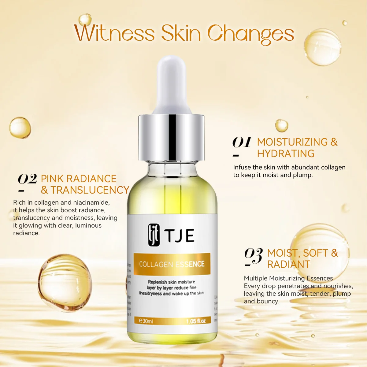 TJE Brand Hydrating Skin Care Serum Facial for Essence Base with Collagen Peptide Niacinamide Brightens Tone Face for Essence